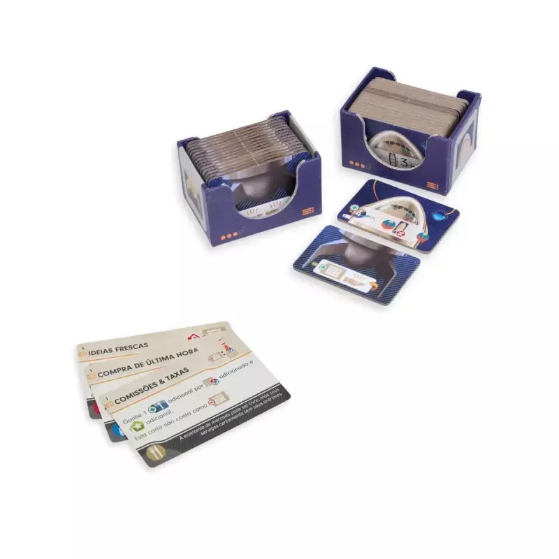 Ao longo do jogo, você também estará competindo com seus colegas supervisores para completar as metas da empresa, o que lhe renderá cubos de progresso ao longo do jogo. Os cubos de progresso também são colocados quando você lança ônibus espaciais e, quando um certo número de cubos é colocado na trilha de progresso da empresa, o jogo termina e o jogador com mais Pontos de Vitória se torna o novo CEO da Galactic Cruise.